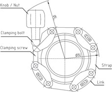 Alu/Stainless steel or pure stainless steel: applicable for metal seals, providing sufficiently strong and uniform pressure over the flange diameter. Stainless steel chainclamps are imperative for metal seals and pressure applications.
